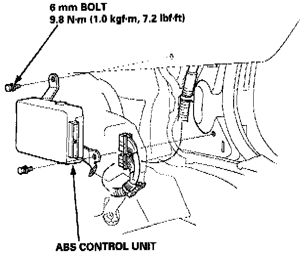 Install the ABS control unit in the reverse order of removal.