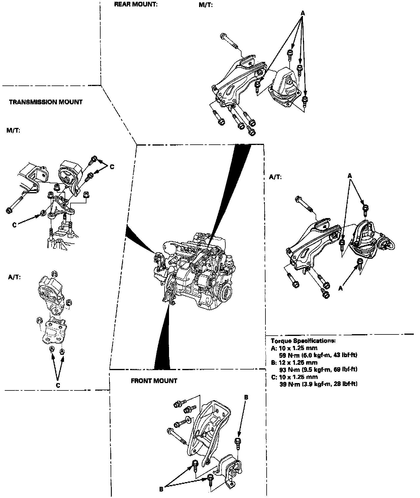 8. Tighten the nuts on the transmission mount.