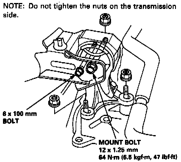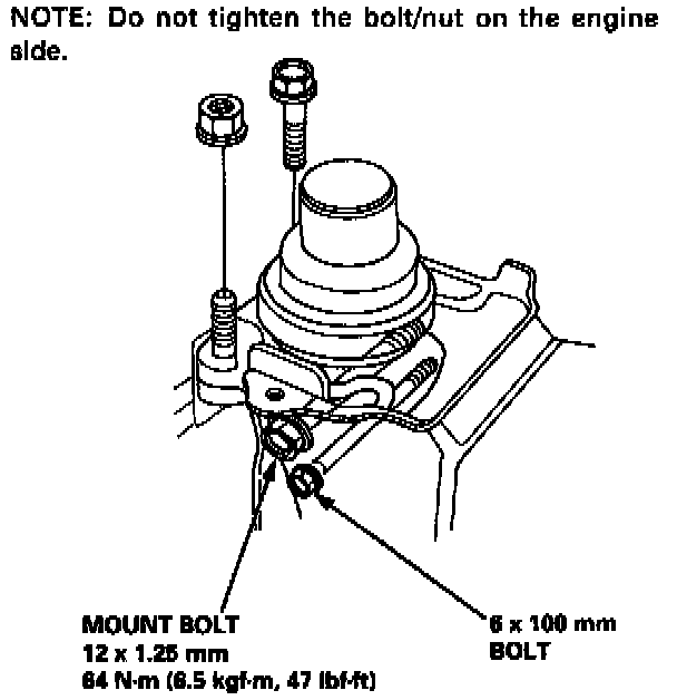 NOTE: Do not tighten the bolts on the engine side.
