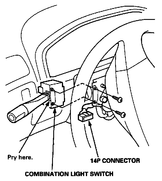 3. Disconnect the 14P connector from the combination light switch, then remove the two screws and switch.