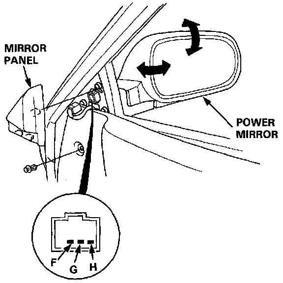 1. Remove the mirror panel and door panel (Sedan), then disconnect the 8-P (Hatchback) or 3-P (Sedan) connector from the power mirror actuator.