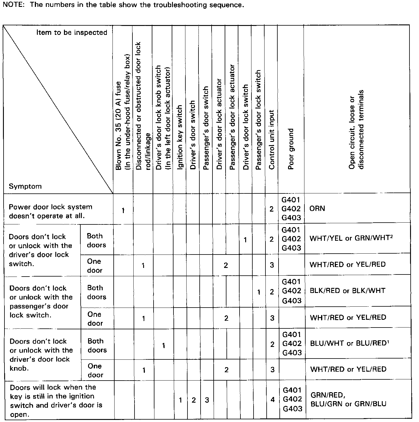 Power Door Locks-Troubleshooting: