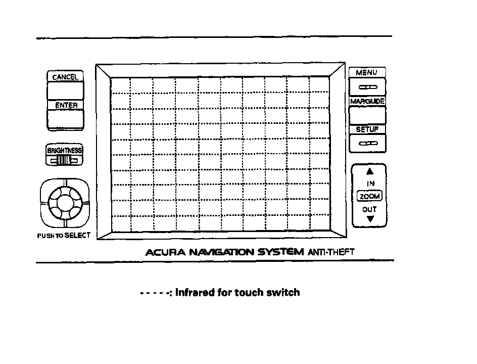 The display unit uses a liquid crystal display (LCD). The LCD is a six-inch-wide, Thin Film Transistor (TFT), stripe type with 220,000 picture elements. The color film and fluorescent light are laid out on the back of the liquid crystal film. The touch sensor on the front of the LCD is an infrared type with nine vertical and nine horizontal infrared rays to produce 81 sensing points. The display unit transmits the signal from each operation key and the touch switches to the navigation unit.