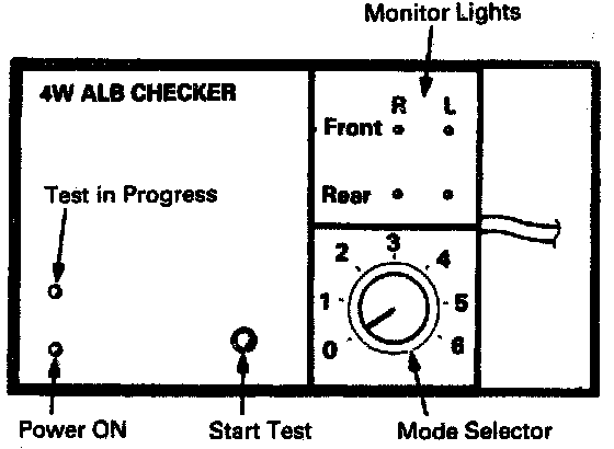 WARNING: Do not turn the Mode Selector switch when the TEST IN PROGRESS LIGHT IS ON. Damage to the ALB checker will result.