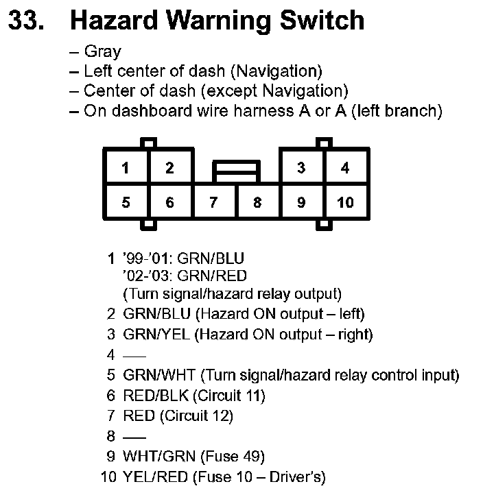 33. Hazard Warning Switch: