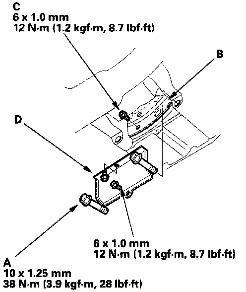 Attach the torque converter to the drive plate (B) with eight bolts (C). Rotate the crankshaft pulley as necessary to tighten the bolts to 1/2 of the specified torque, then to the final torque, in a crisscross pattern. After tightening the last bolt, check that the crankshaft rotates