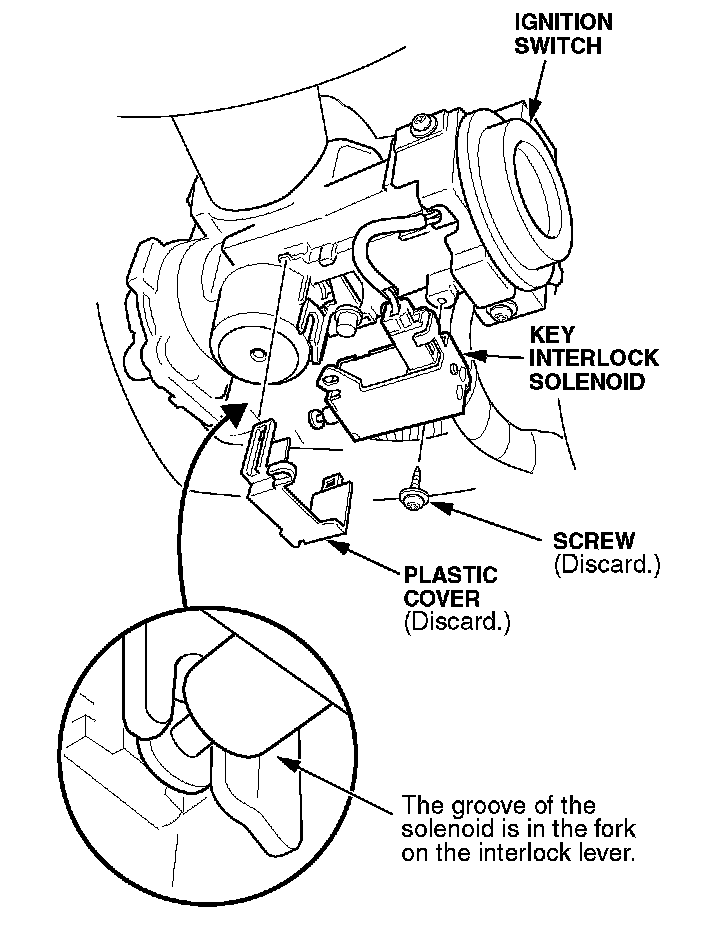 2. Remove and discard the plastic cover from the ignition switch key interlock solenoid.