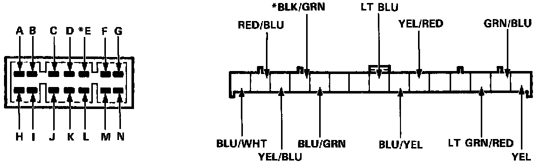 - Different wires with the same color have been given a number suffix to distinguish them (for example, GRN/BLU1 and GRN/BLU2 are not the same).