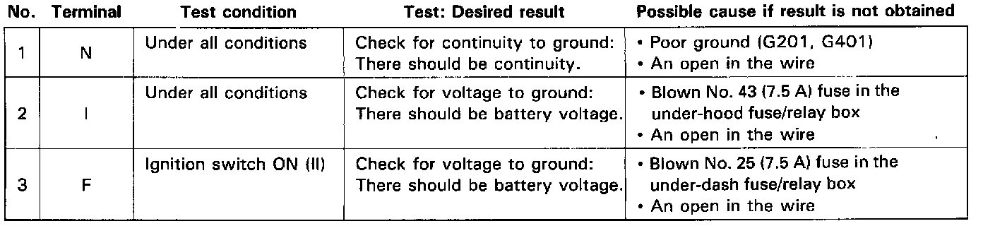 If the terminals look OK, make the following input tests at the connector and under-dash fuse/relay box.