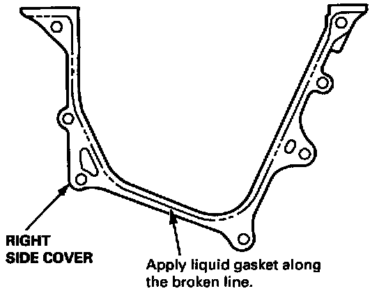 12. Apply liquid gasket on oil pump and right side cover mating areas as shown below.