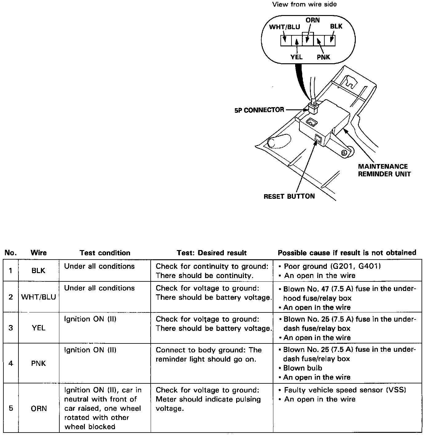 1. With the ignition switch OFF, disconnect the 5-P connector from the reminder unit.