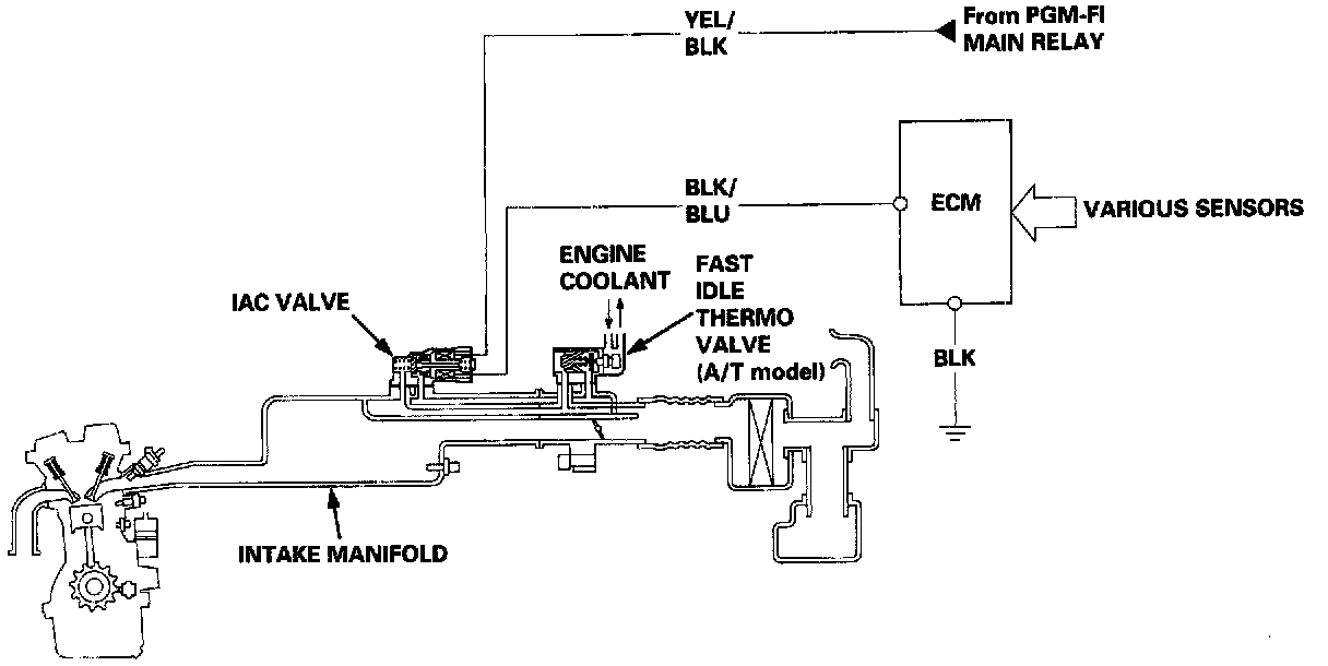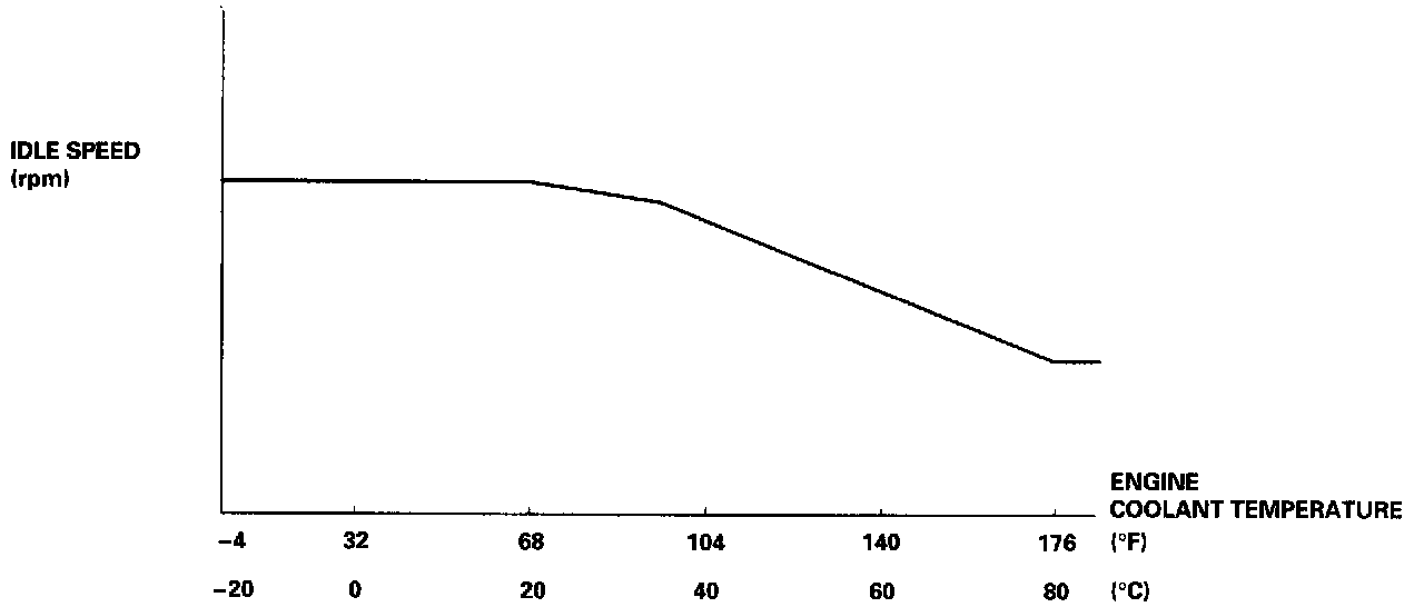 2. When the coolant temperature is low, the IAC valve is opened to obtain the proper fast idle speed. The amount of bypassed air is thus controlled in relation to the engine coolant temperature.