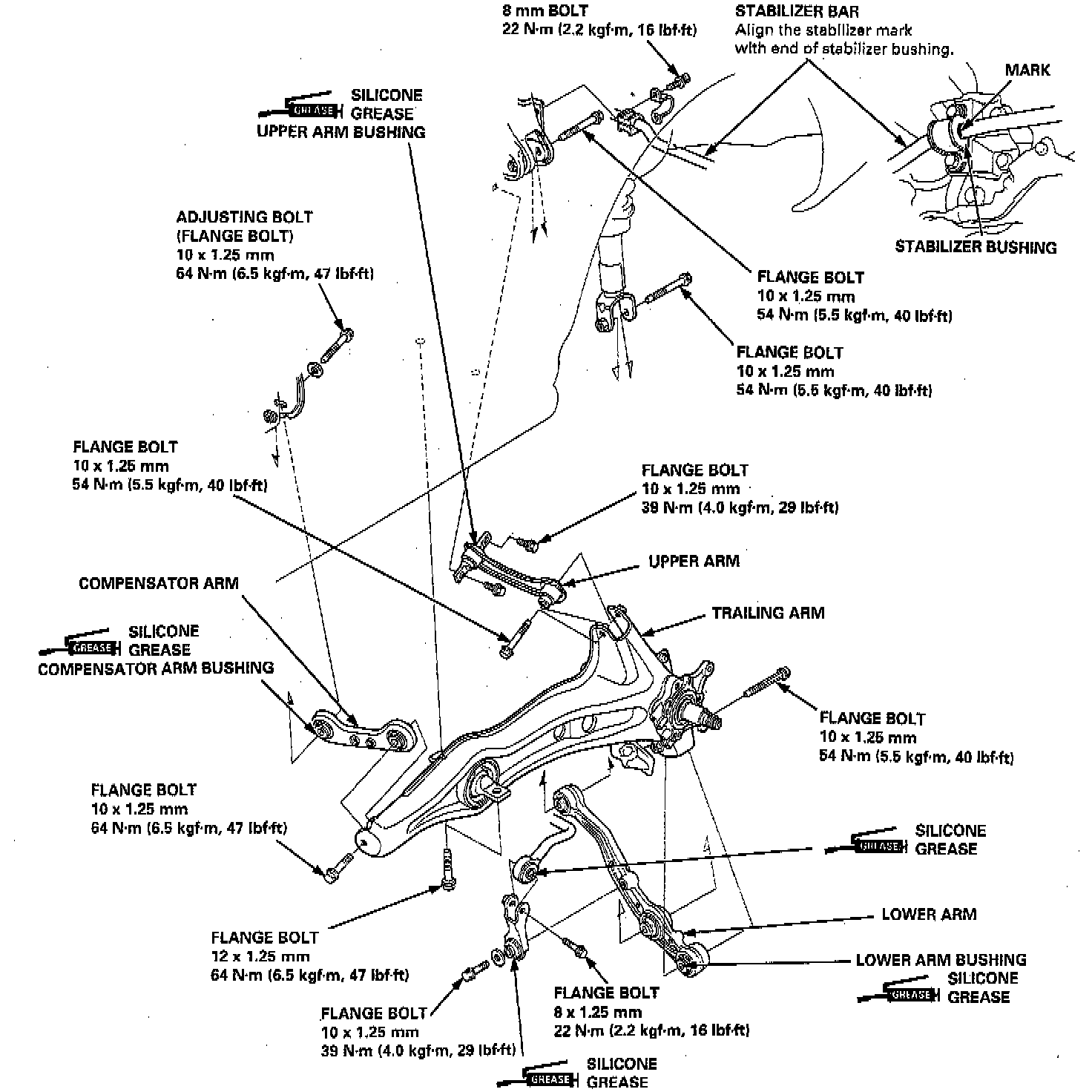 - After installing the suspension arm, check the rear wheel alignment and adjust if necessary.