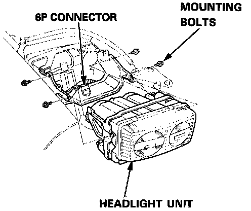 6. Remove the four mounting bolts, then remove the headlight unit.