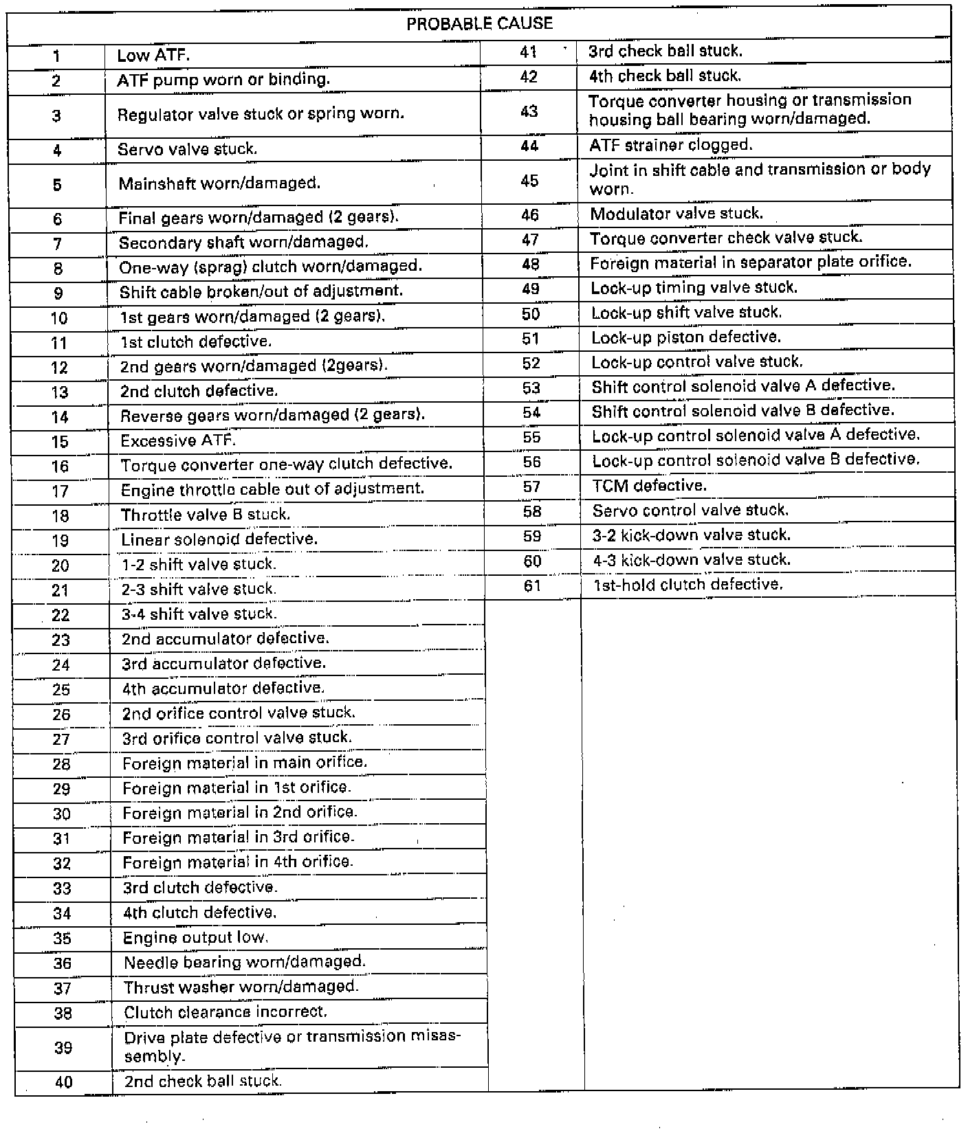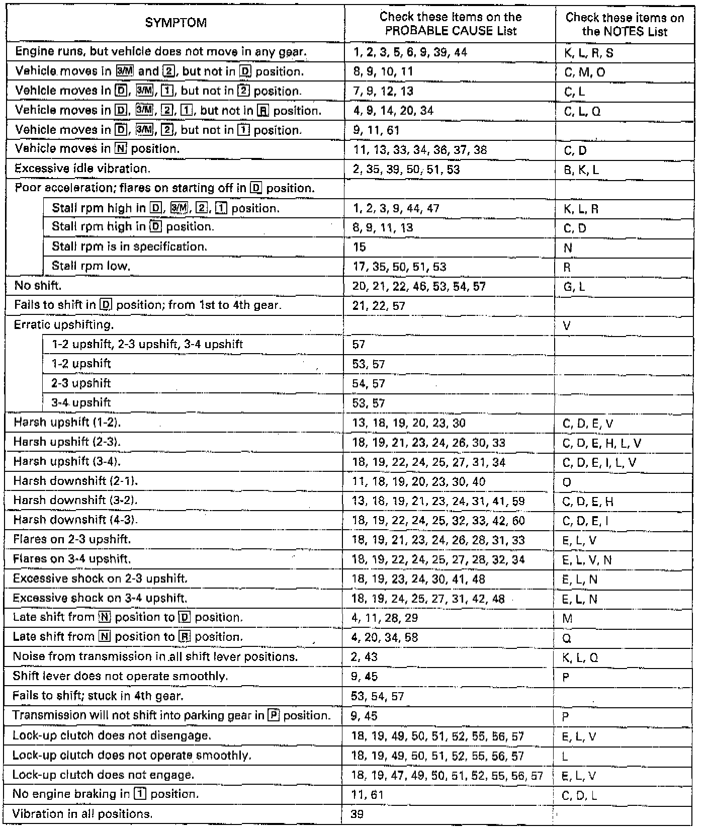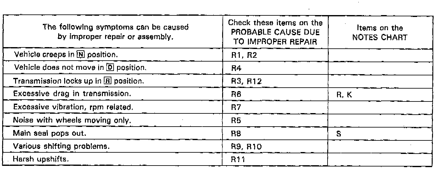 Symptoms to Probable Cause Chart