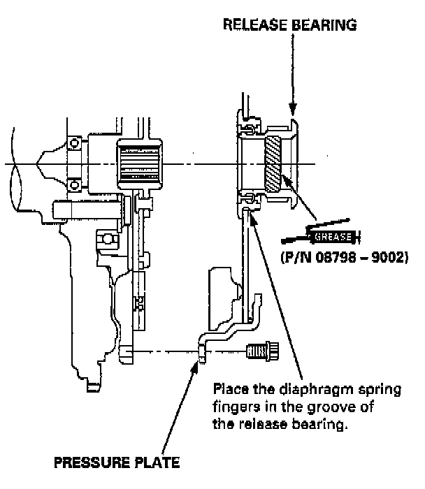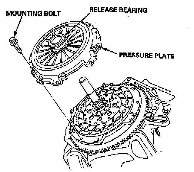 4. Install the pressure plate. Make sure the release bearing does not come off.