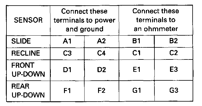 Driver's Power Seat Position Sensor Test