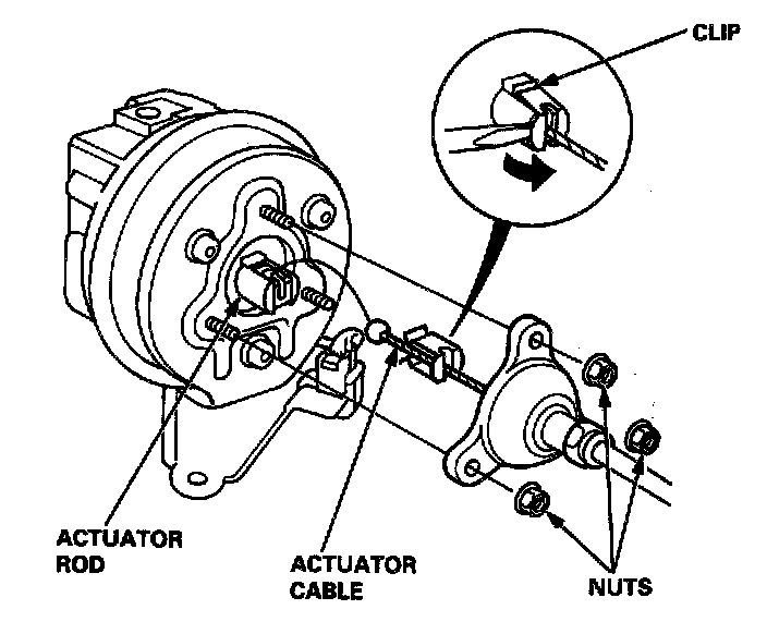 7. Install in the reverse order of removal, and adjust free play at the throttle linkage after connecting the actuator cable.