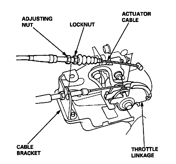6. Loosen the locknut, then disconnect the actuator cable from the throttle linkage.