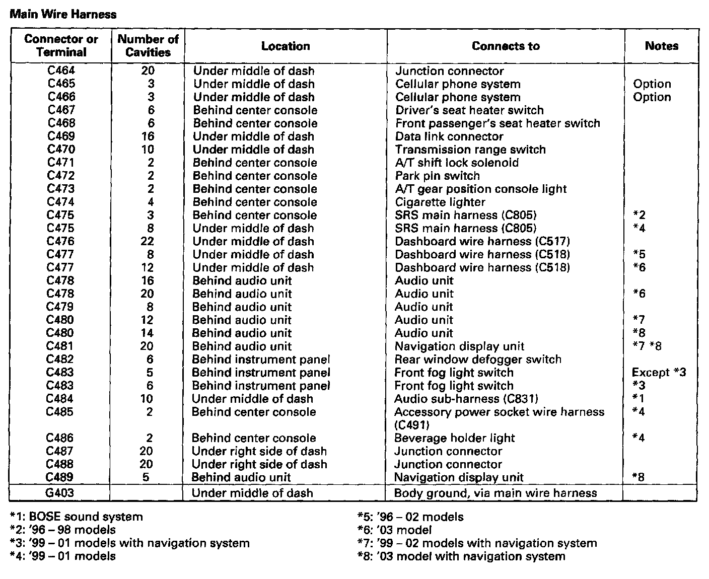 Main Wire Harness:
