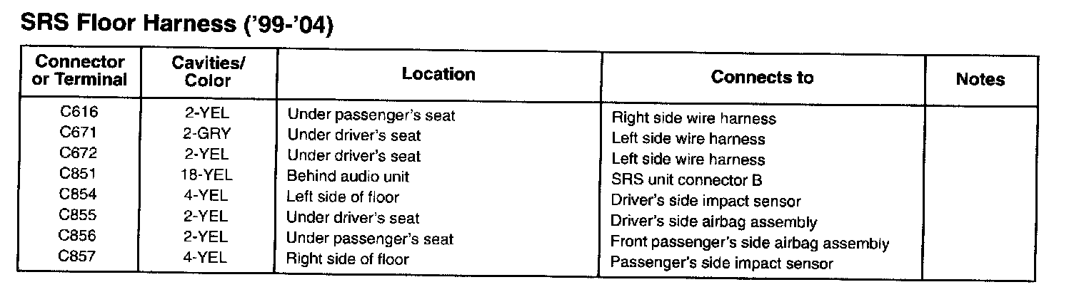 SRS Floor Harness ('99-'04):