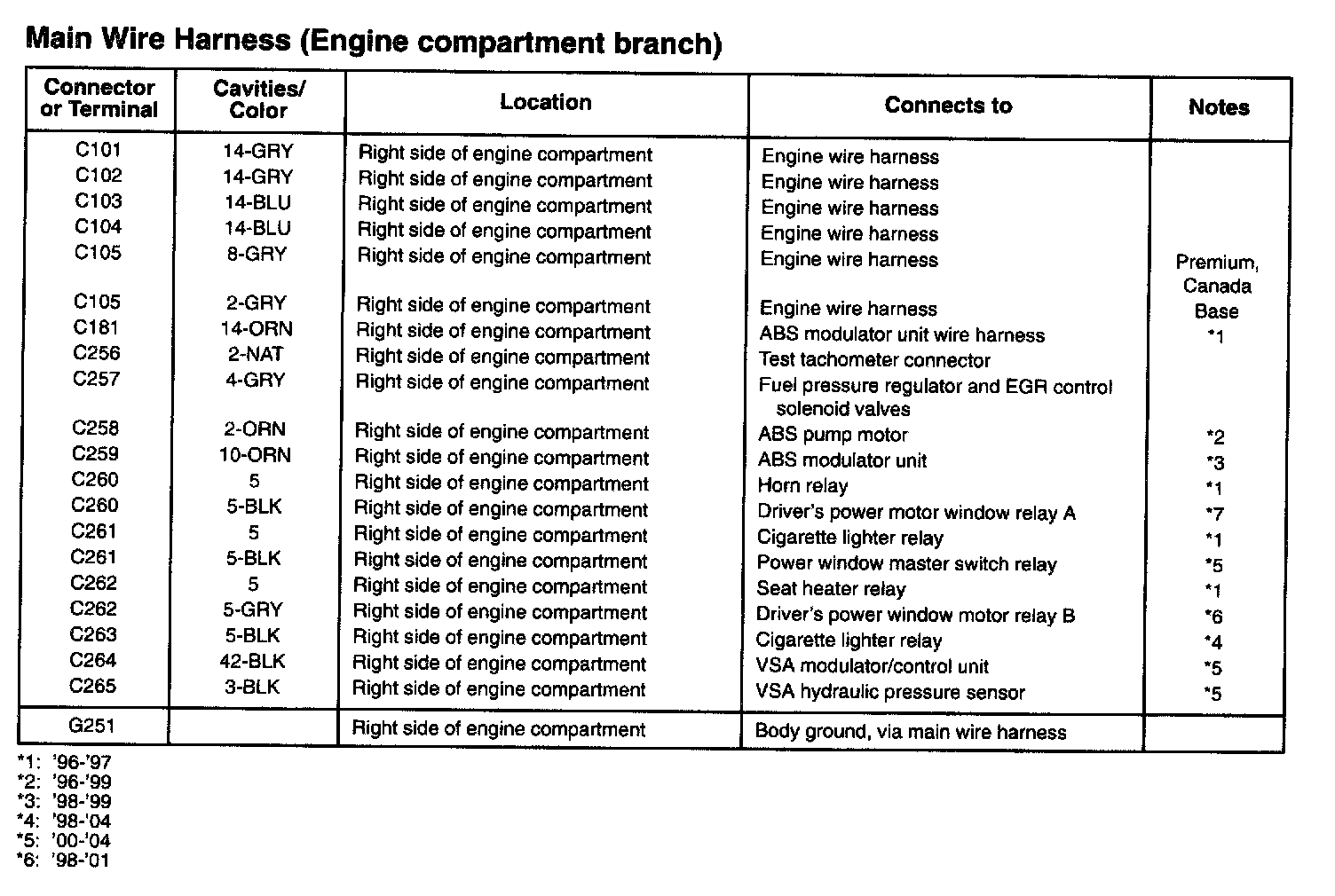 Main Wire Harness - Index (Part 1):