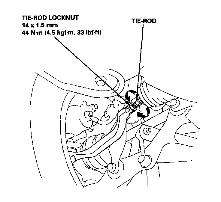 4. Loosen the tie-rod locknuts, then turn both tie-rods in the same direction until the front wheels are pointed straight ahead.