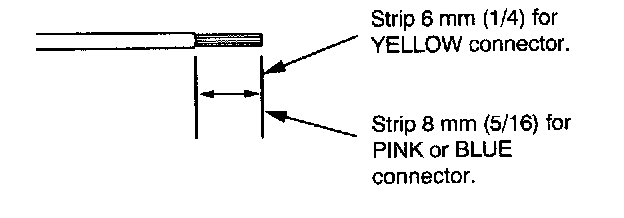 7. If you are using a yellow splice connector, strip about 6 mm (1/4 inch) of insulation oft the ends of both wires. It you are using a pink or blue splice connector, strip off about 8 mm (5/16 inch) of insulation.