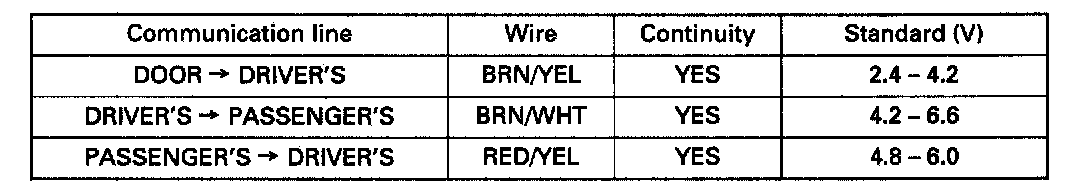 - The control units (driver's and passenger's) cannot wake up except with the ignition switch ON and the wake up signal from the door unit.