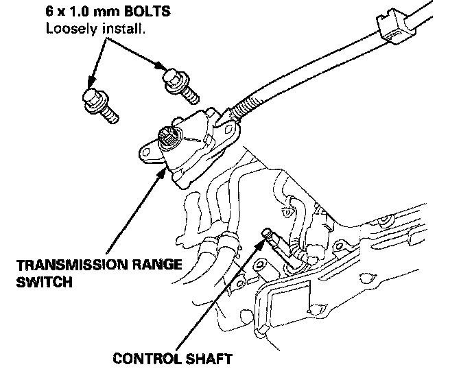 14. Install the transmission range switch on the control shaft, and loosely install the bolts.