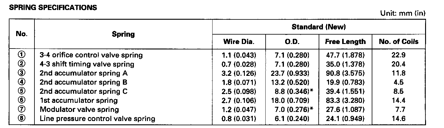 SPRING SPECIFICATIONS
