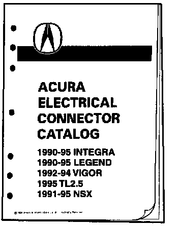 Additional information on replacement connectors, terminals, and pigtails is listed in the Acura Electrical Connector Catalog shown (P/N 13CNNB-3).