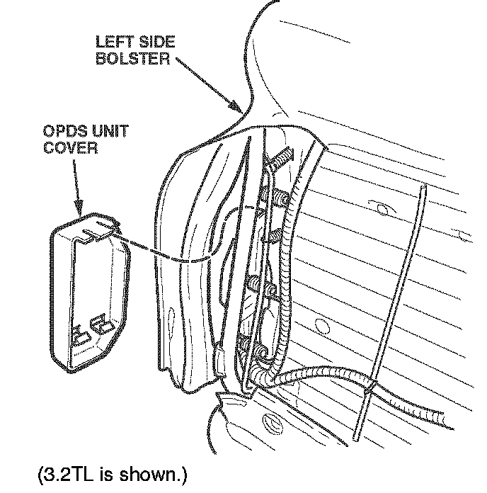 3. Pull back the seat-back cover from the left side bolster to access the OPDS unit cover.