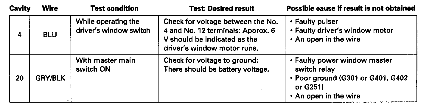 - If all the input tests prove OK, the power window master switch must be faulty; replace it.