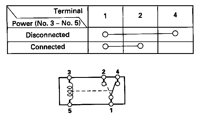 - There should be continuity between the No.2 and No.4 terminals when power is disconnected.