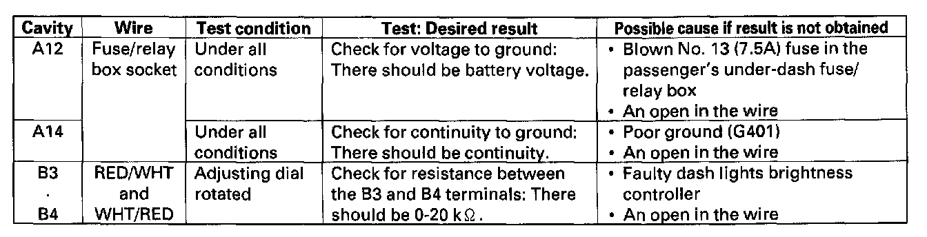1. Before testing the dash lights brightness control functions, troubleshoot the multiplex control system.