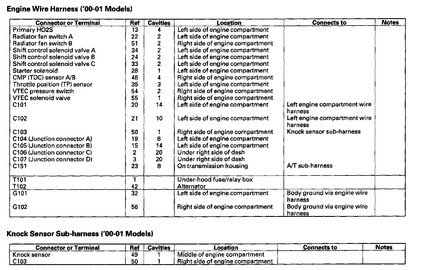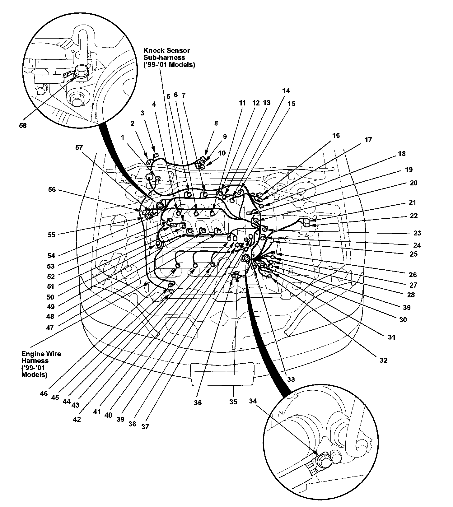Engine Wire Harness (00-01 Models)/Knock Sensor Sub-harness (00-01 Models):