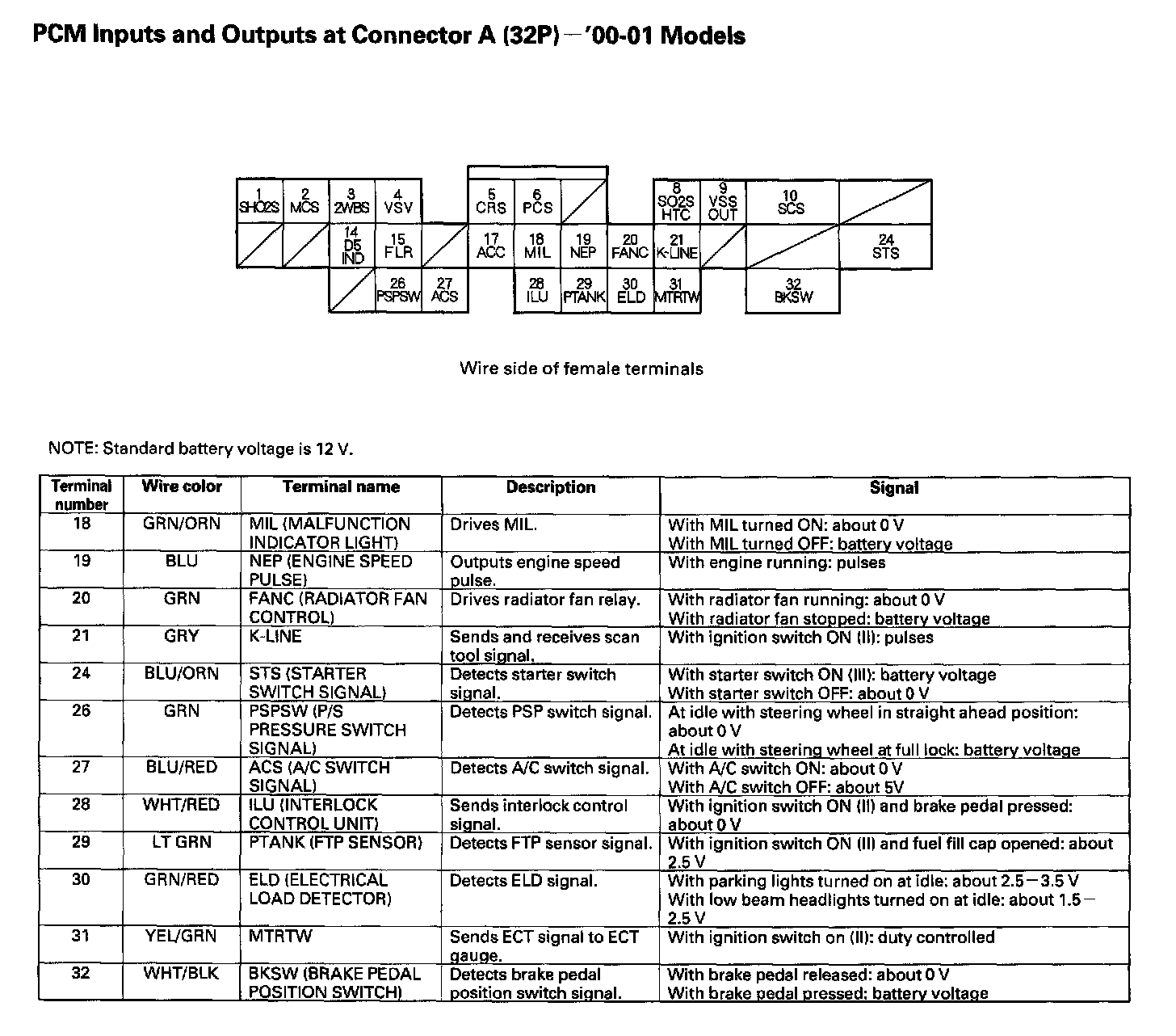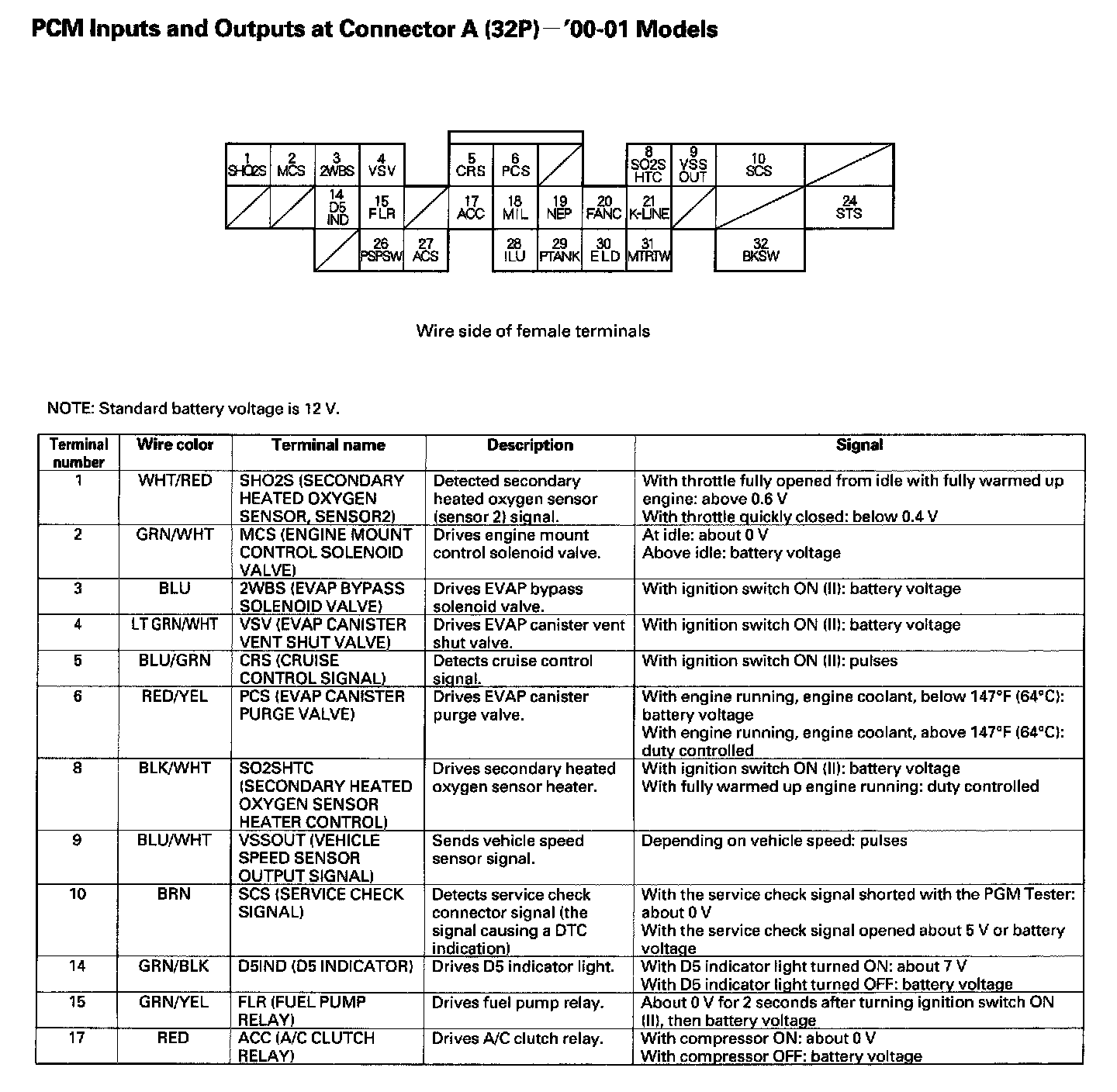 PCM Inputs And Outputs At Connector A (32P):