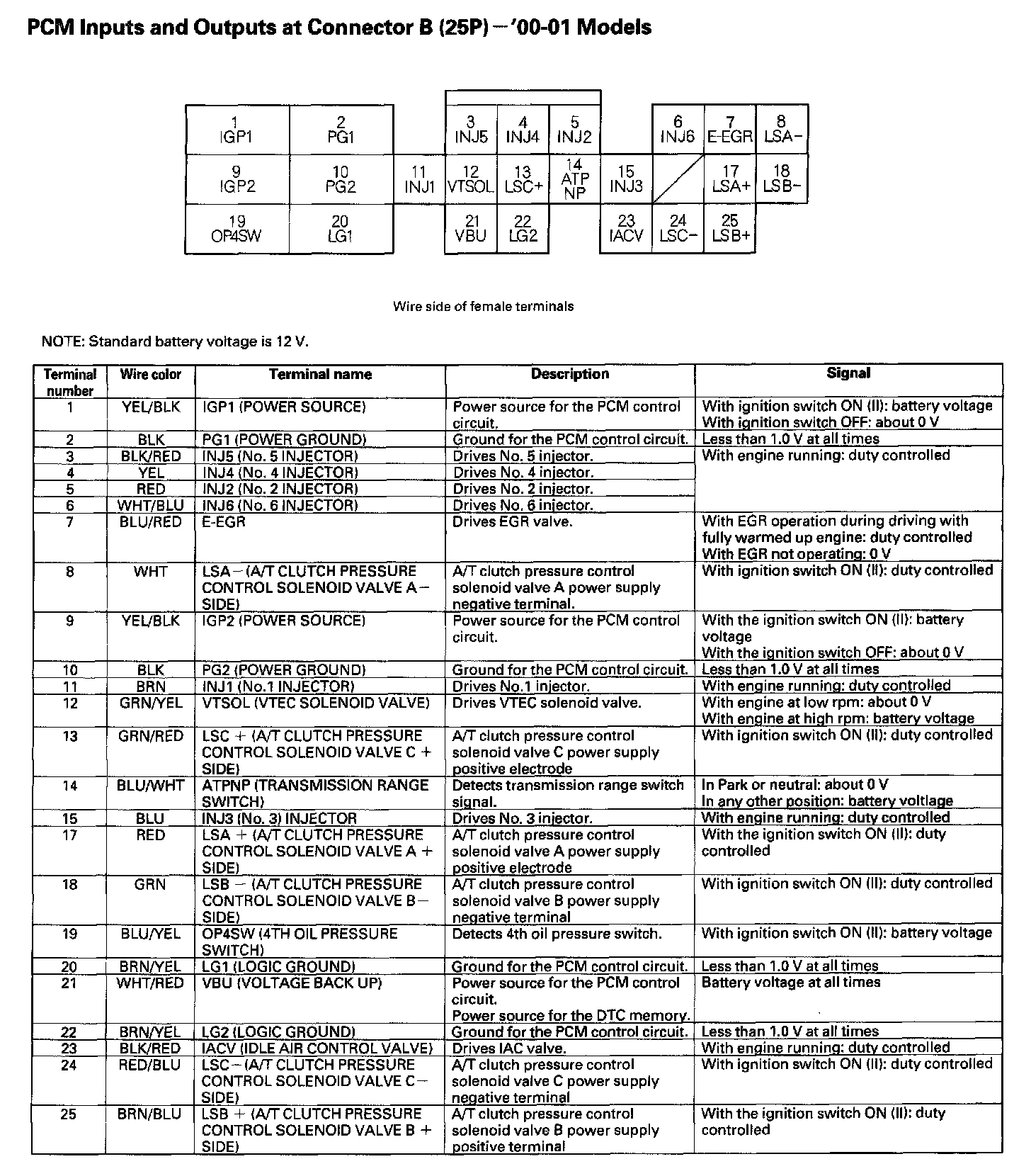 PCM Inputs And Outputs At Connector B (25P):
