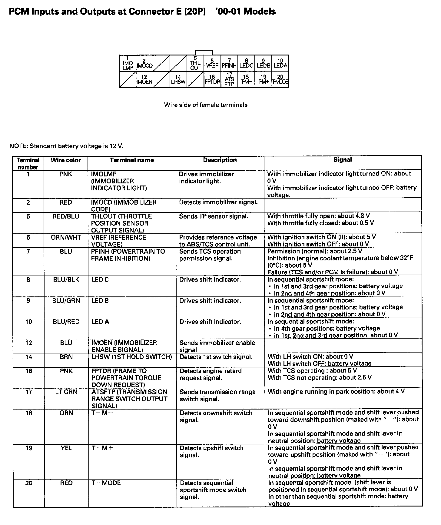 PCM Inputs And Outputs At Connector E (20P):