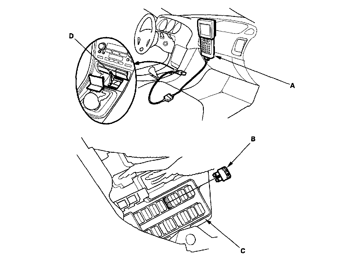 - Use the OBD II Scan Tool or the Honda PGM Tester (A).
