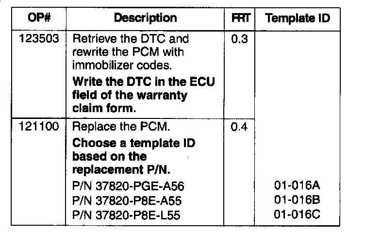 ^ Immobilizer PCM code (This VIN-specific, 4-digit code is available on the ACURALINK 2000 VIN Status Inquiry display. The code is changed often, so use it as soon as you get it.)