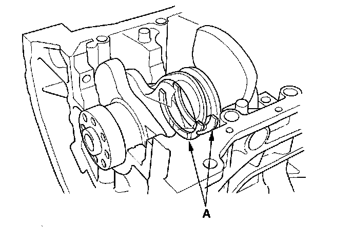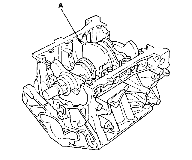 8. Lower the crankshaft (A) into the block.