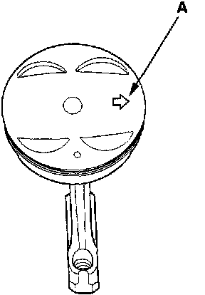 14. Install the piston with the arrow (A) facing the timing belt side of the engine.
