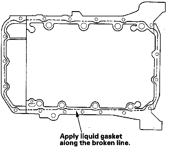 NOTE: Do not install the parts if 5 minutes or morehave elapsed since applying the liquid gasket. Instead, reapply liquid gasket after removing the old residue.