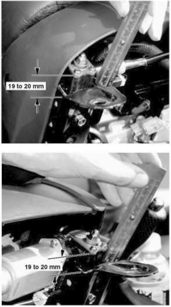7. Measure the distance between the front of the lower rail and the front of the seat transmission. It should be 19 to 20 mm.