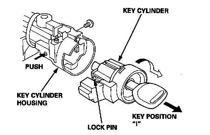 8. Push the lock pin, and remove the key cylinder by pulling the ignition key.