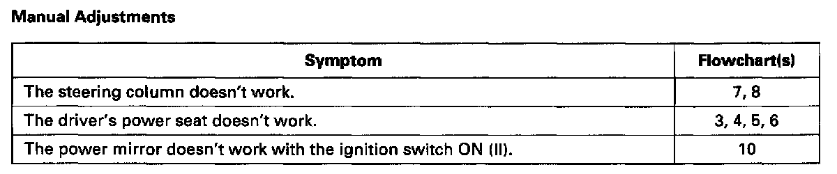 - If the ignition key is not inserted, the steering column is not adjusted at No.3 to No.4. It will be adjusted at No.9 to No.10 only after the key is inserted.