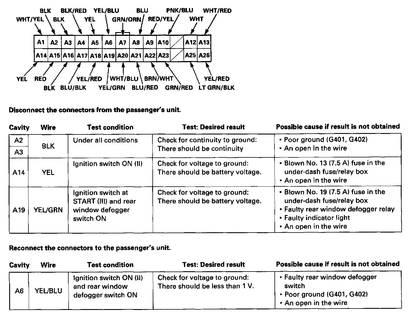 NOTE: Before testing, go to the Troubleshooting Guide. Be sure to go through self-diagnosis function modes 1 and 2.
