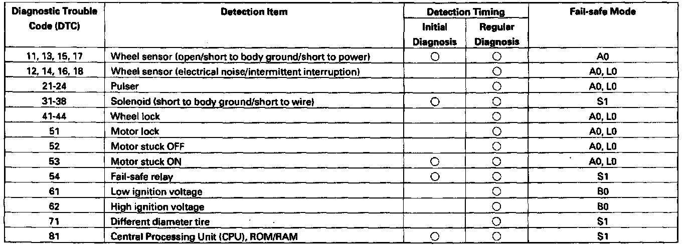 - When a problem is detected by self-diagnosis, the ABS/TCS control unit shifts to fail-safe mode.
